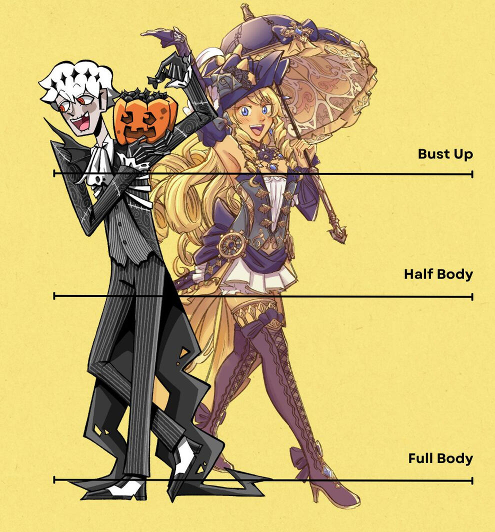 Detailed character akan kena charge lebih per karakter. Harga ditentukan oleh Artist. (Chara dari game Hoyo biasanya kena charge ini karena desain mereka penuh detail, mohon dimaklumi TAT)